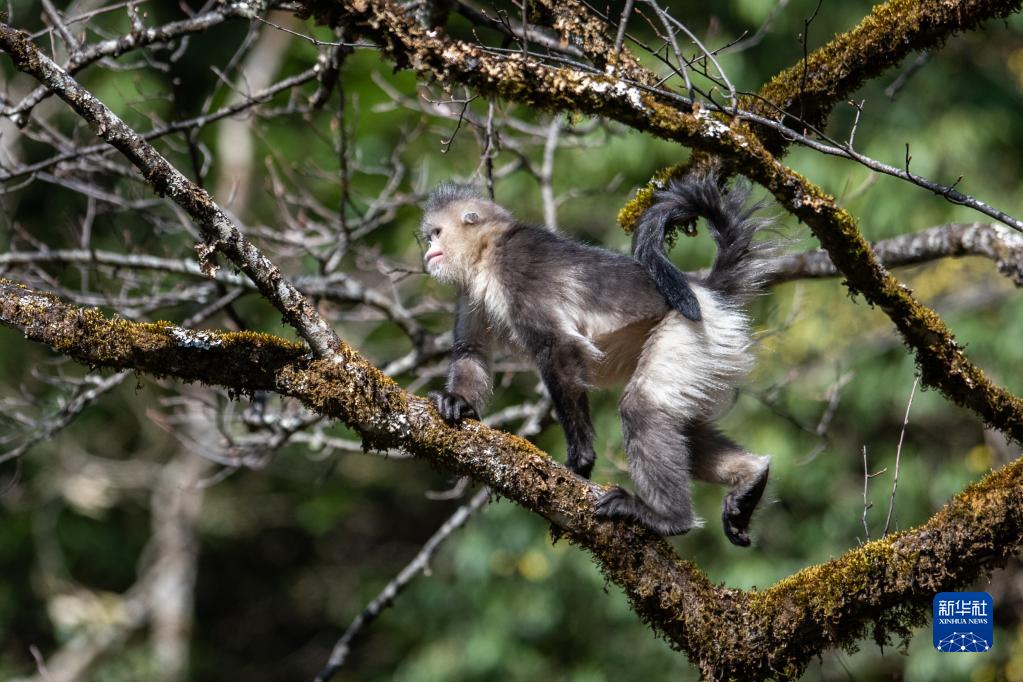 云南迪慶藏族自治州香格里拉滇金絲猴國(guó)家公園里的滇金絲猴(3月16日攝)。新華社記者 胡超 攝
