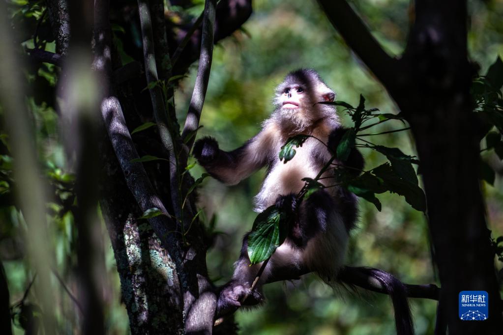 云南迪慶藏族自治州香格里拉滇金絲猴國(guó)家公園里的滇金絲猴(7月19日攝)。新華社記者 江文耀 攝