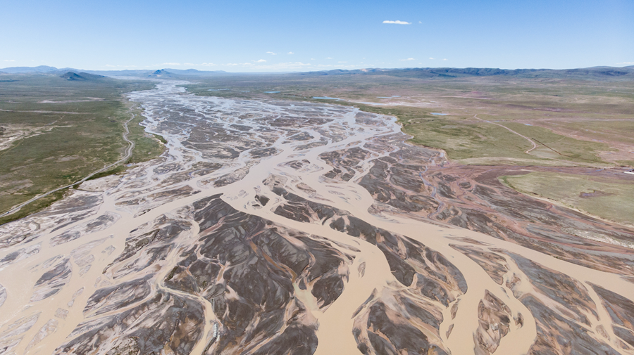 這是2019年8月9日拍攝到的位于青海省格爾木市唐古拉山鎮(zhèn)的長(zhǎng)江正源沱沱河的照片(無(wú)人機(jī)照片)。新華社記者 吳剛 攝