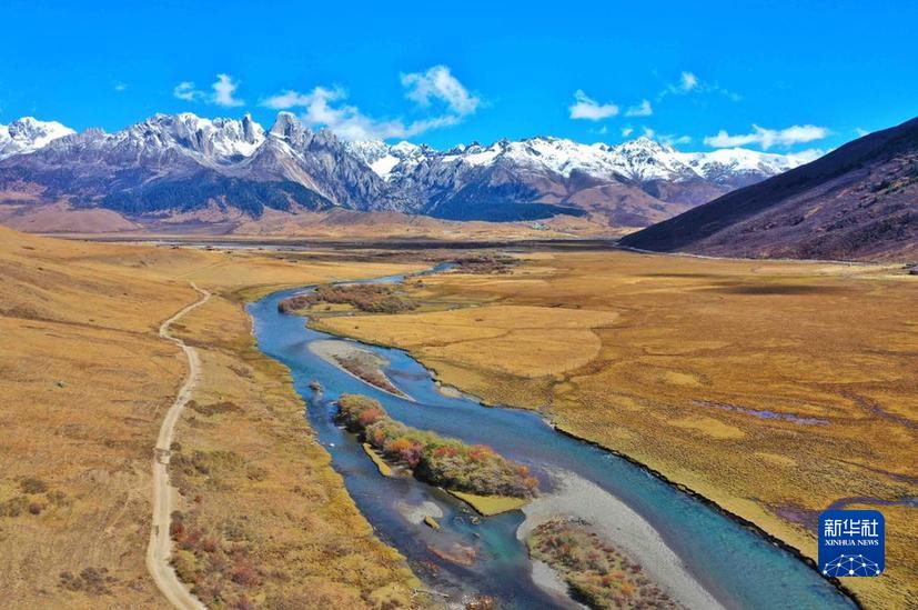 這是10月24日在措普溝景區(qū)內(nèi)拍攝的章德草原(無人機(jī)照片)。新華社記者 劉坤 攝