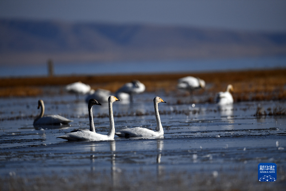 青海湖監(jiān)測(cè)到水鳥(niǎo)近19萬(wàn)只 越冬大天鵝560余只