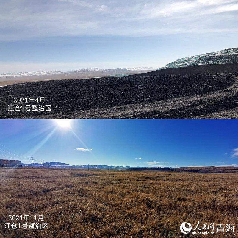 木里礦區(qū)江倉1號礦復綠前后對比。人民網(wǎng) 甘海瓊 攝