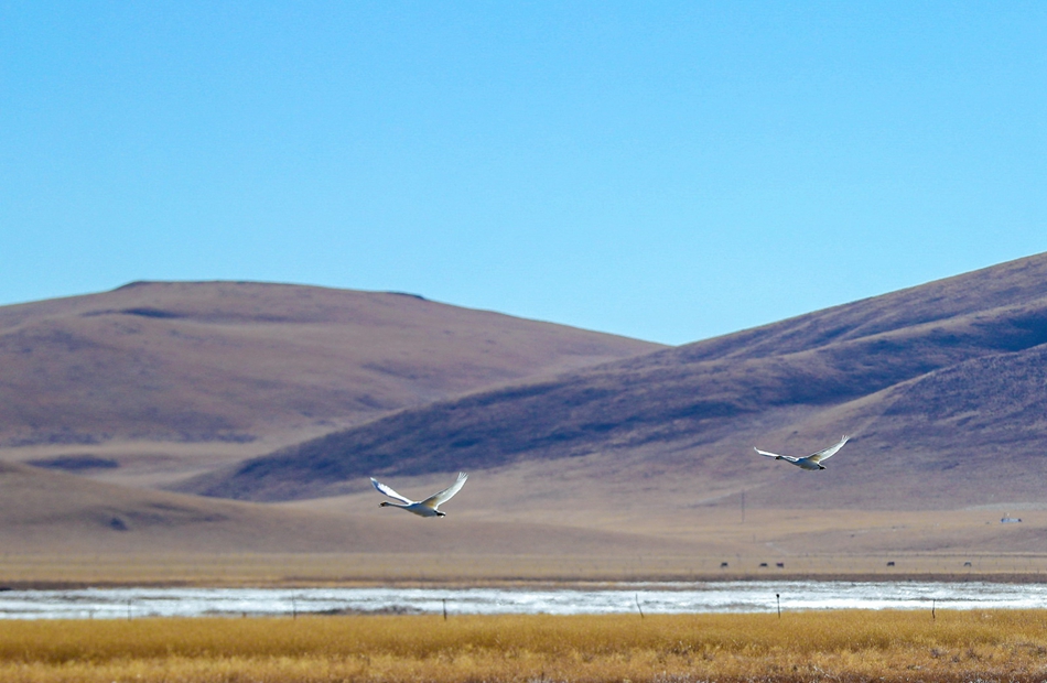 “碌曲縣依托“黃補(bǔ)”區(qū)項(xiàng)目先后將湖邊的尕海鎮(zhèn)、鎮(zhèn)屬機(jī)關(guān)單位遷移出了核心區(qū),將居住在尕海湖邊的牧民群眾實(shí)施了整村搬遷,有效減緩了對(duì)侯鳥的干擾?!备拭C尕海則岔國(guó)家級(jí)自然保護(hù)區(qū)管護(hù)中心尕海保護(hù)站站長(zhǎng)香毛吉說,隨著尕海濕地生態(tài)的持續(xù)改善,為大天鵝提供了穩(wěn)定的越冬水位、豐富的濕地食物,在尕海境內(nèi)越冬的大天鵝數(shù)量逐年增加。