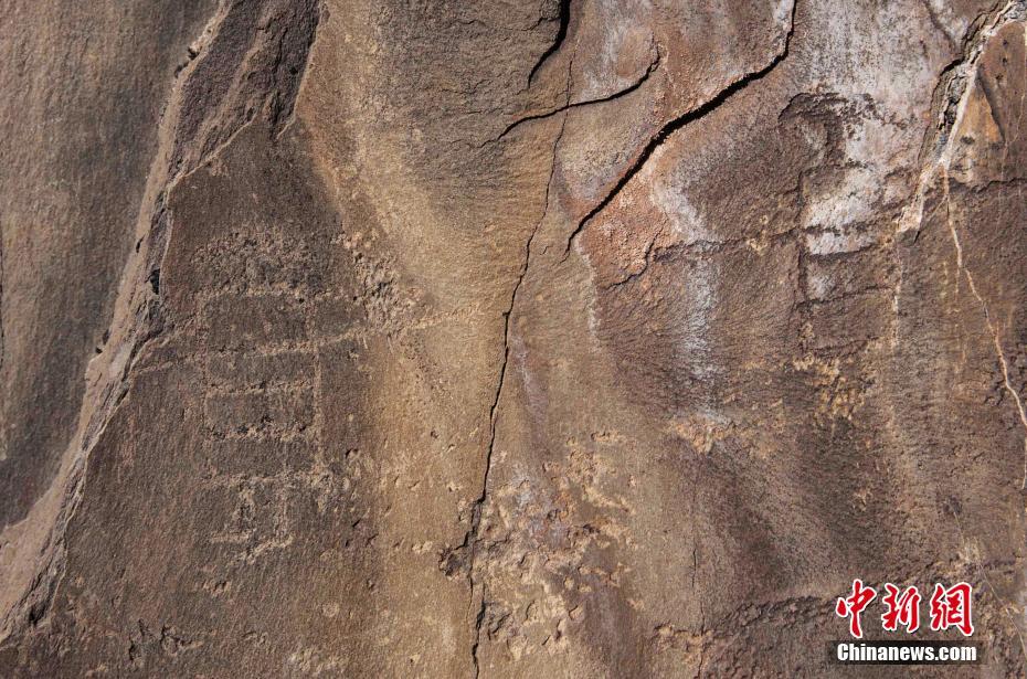 圖為此次發(fā)現(xiàn)的古巖畫遺存。(12月17日拍攝) 中新社發(fā) 江巴然丁攝