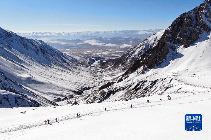 1月1日,登山愛好者攀登崗什卡雪峰(無人機照片)。