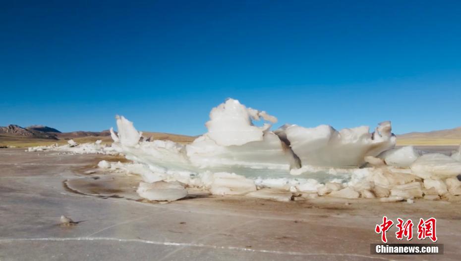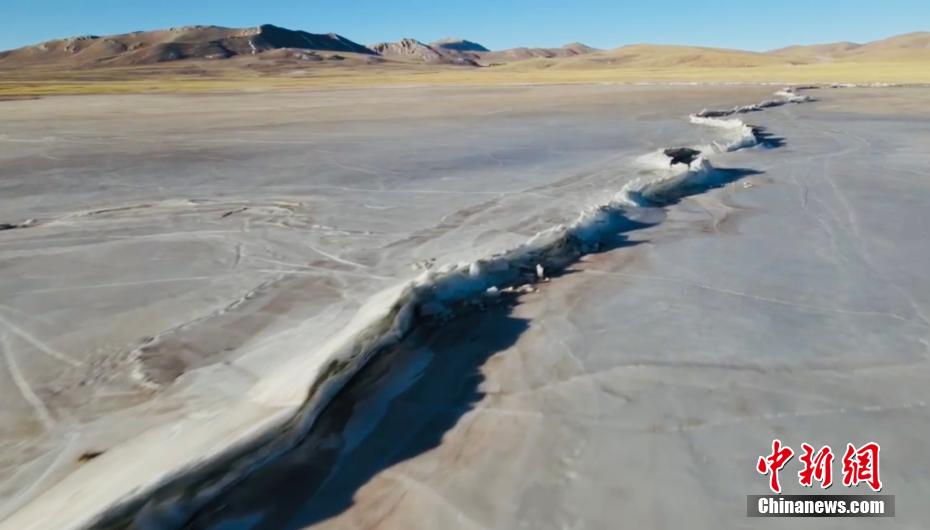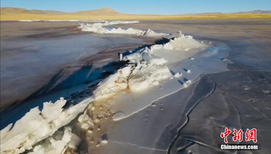 航拍長(zhǎng)江源頭班德湖封湖 如同冰上長(zhǎng)城
