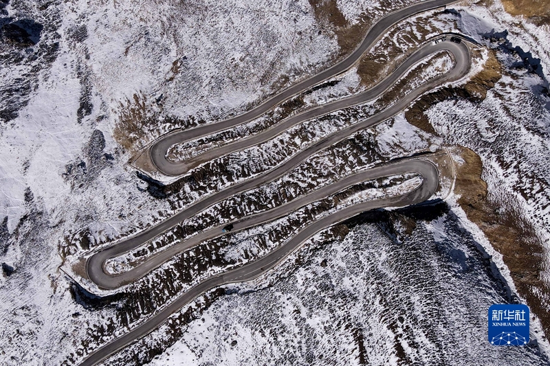 圖為四川甘孜州巴塘縣藏巴拉山的公路(無人機照片)。 新華社記者 胥冰潔 攝