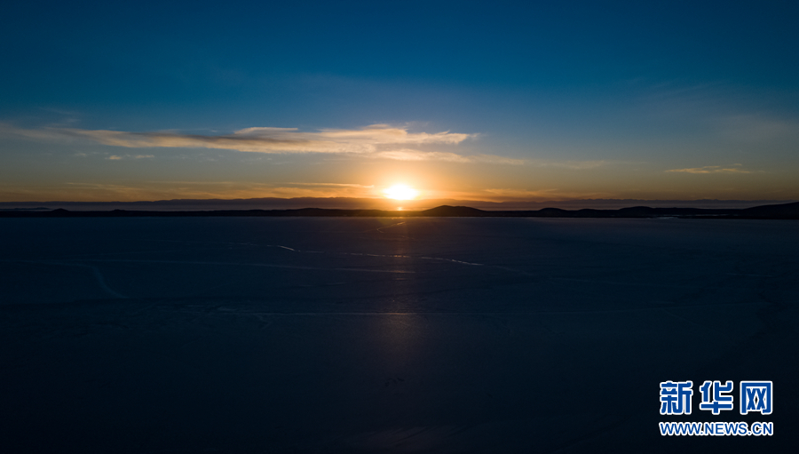 陽光灑在冰封的湖面上。新華網(wǎng) 宋忠勇 攝