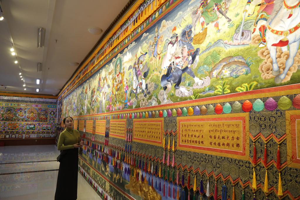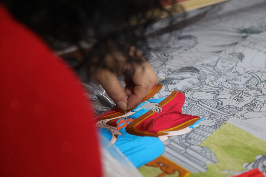 目前,拉毛葉忠正帶領(lǐng)百名繡娘計劃用5年時間完成一幅長268米的藏繡作品《格薩爾王》。“未來,我希望更多農(nóng)牧區(qū)婦女通過學(xué)習(xí)藏繡改變自己的命運,我們一起在傳承中創(chuàng)新,讓藏繡走向更廣闊的舞臺?!崩~忠說。