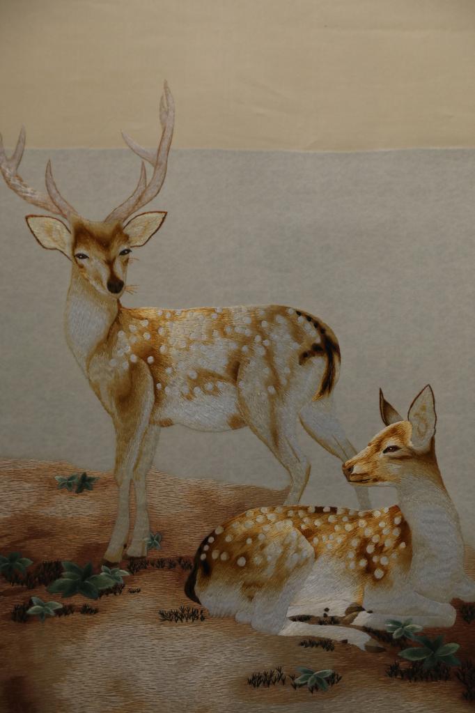 “你看這兩幅都是貴南藏繡,一幅生硬、粗獷,另一幅靈動、細(xì)膩,就是要通過學(xué)習(xí)其他繡法,不斷摸索創(chuàng)新,讓藏繡越來越精美?!崩~忠拿著這兩幅藏羚羊作品解釋。作為省級非物質(zhì)文化遺產(chǎn)項目代表性傳承人,拉毛葉忠一直在思考,如何讓傳統(tǒng)藏繡煥發(fā)新活力。