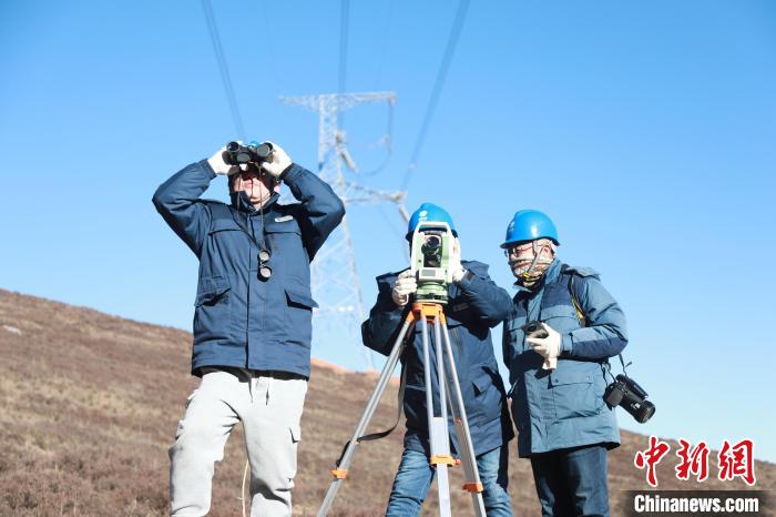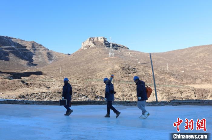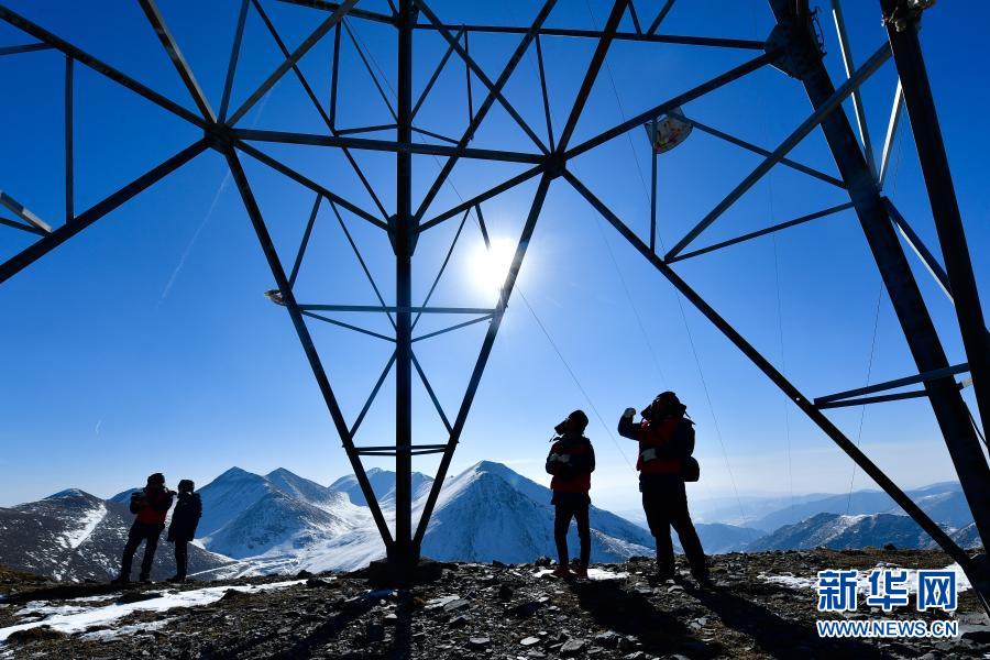 圖為國(guó)網(wǎng)青海檢修公司輸電運(yùn)檢人員李承鴻、楊濤、梁威對(duì)750千伏拉寧線開(kāi)展春節(jié)前特巡。朱毅然 攝