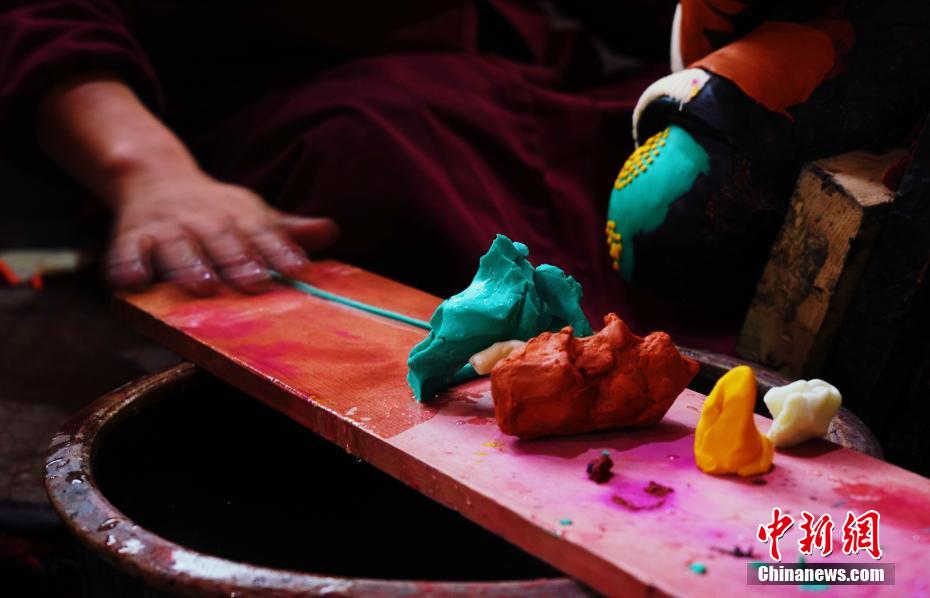 圖為塔爾寺藝僧搓揉酥油成條狀。馬銘言 攝