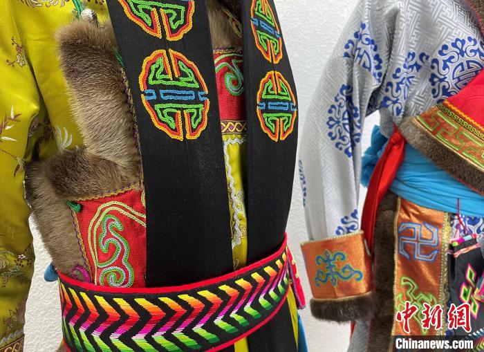 圖為蒙古族服飾上的刺繡?!∑罾C娟 攝