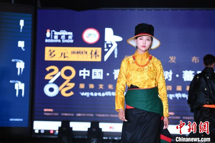 圖為模特展示藏族服飾?!●R銘言 攝