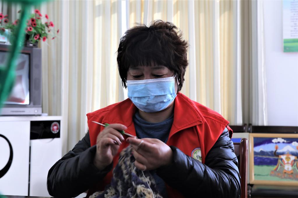 在社區(qū)“石榴籽家園”里,各民族婦女利用閑暇時(shí)間學(xué)習(xí)鉤織、掐絲唐卡、十字繡等技藝。藏族婦女茍曉紅說(shuō):“我們制作的抱枕、坐墊、裝飾畫(huà)等手工藝品在線上線下銷售,讓我們?cè)诩议T口掙到了錢?!?/p>