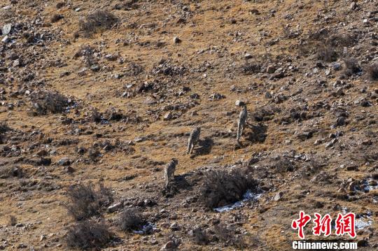 祁連山國家公園工作人員目擊三只雪豹