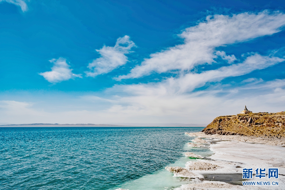 清晨,牧民才仁加站在青海湖邊遠(yuǎn)眺,看著漂浮的冰塊散落在湖面上,像是一朵朵蓮花鑲進(jìn)了藍(lán)寶石?!敖衲晏鞖夂茫鈨霰韧旮缫恍?,有的冰塊被湖水和風(fēng)推到了岸邊,有的冰塊直接在湖里融化。”才仁加說。
