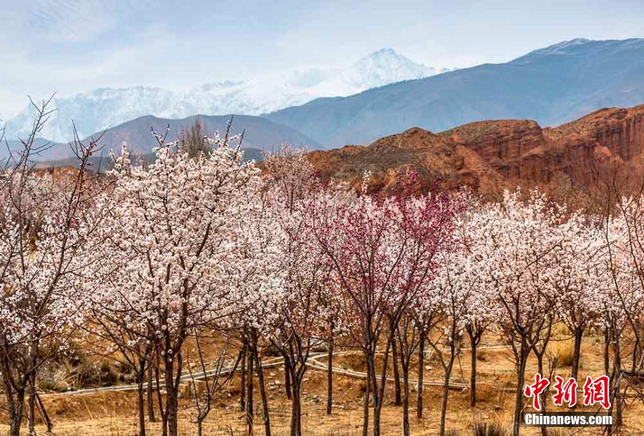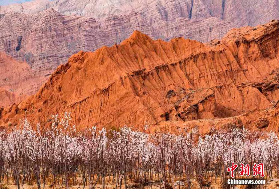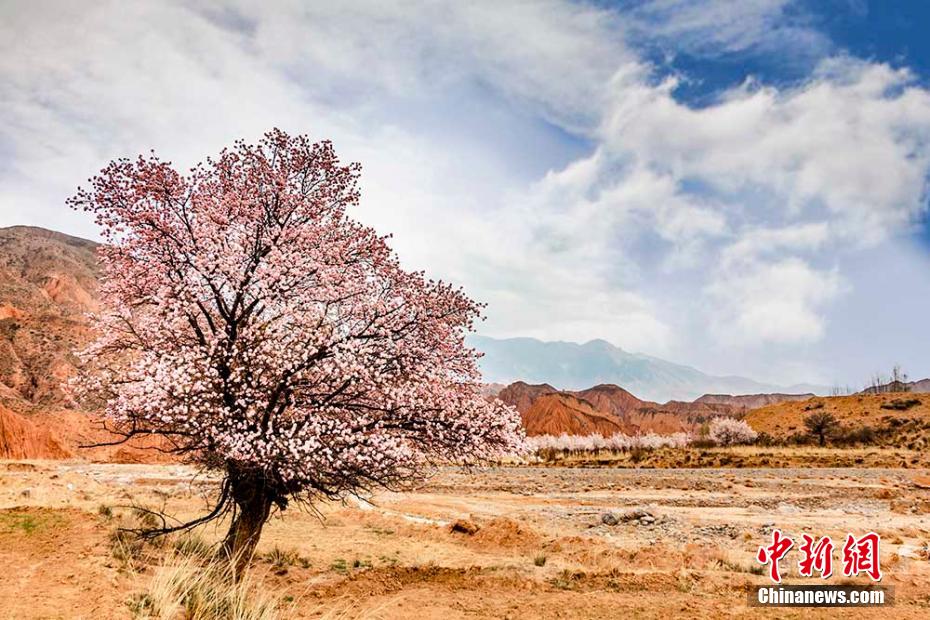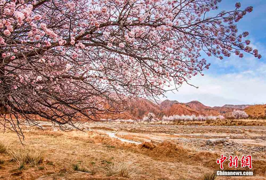 陽春三月,黃河岸畔,素有“高原小江南”之稱的青海省海南藏族自治州貴德縣尕讓鄉(xiāng)阿什貢村的杏花開滿了枝頭,丹霞地貌與杏林互映,五彩繽紛,高原大地生機(jī)盎然。 趙海梅 攝