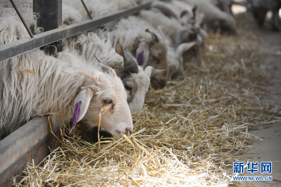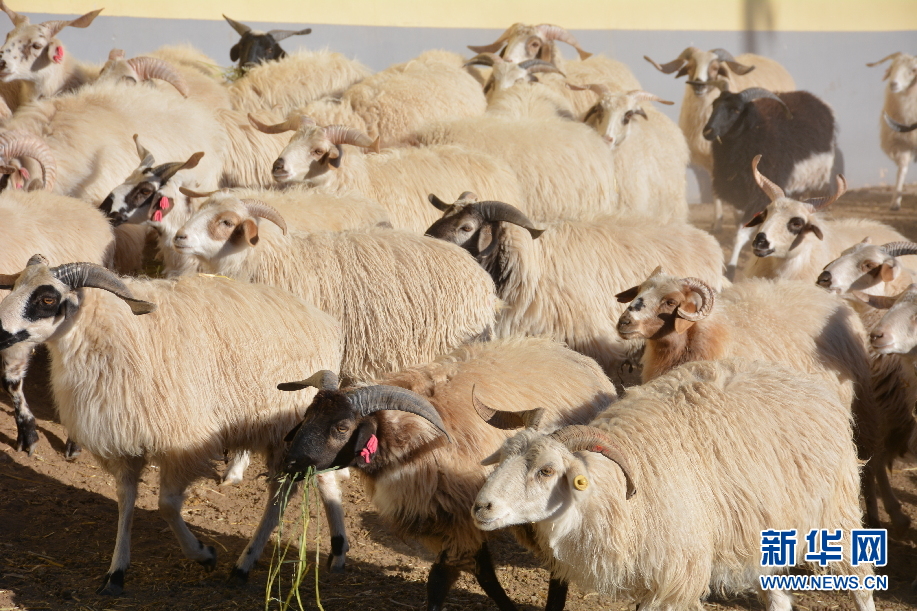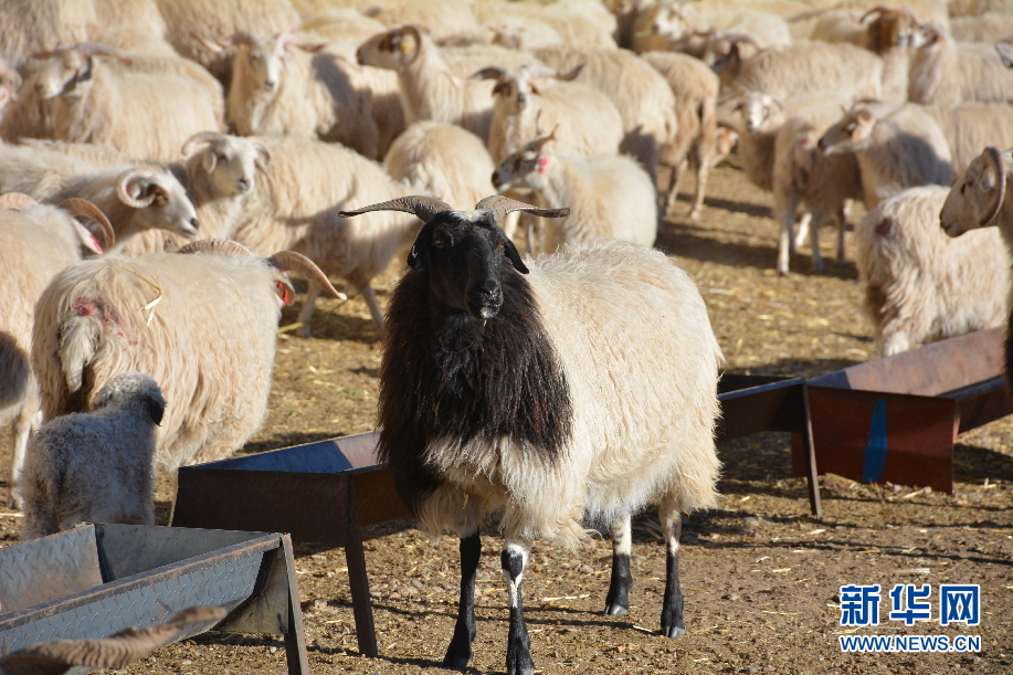 在共和縣倒淌河鎮(zhèn)次汗達(dá)哇村的藏羊養(yǎng)殖基地,藏羊在進(jìn)食草料(資料圖)。新華社記者 柳澤興 攝