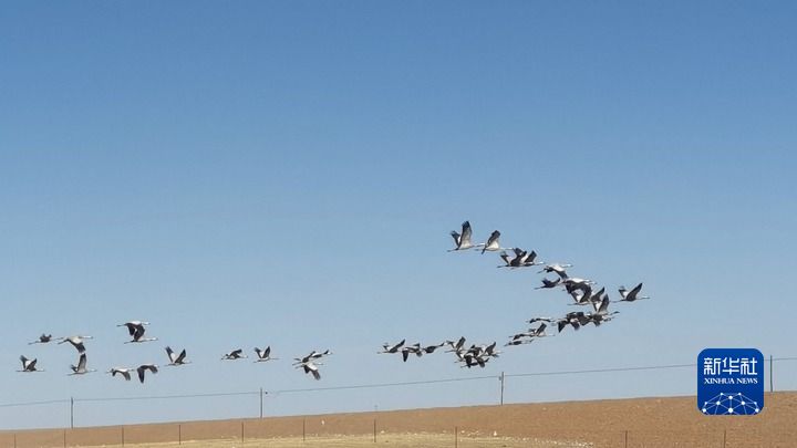 今年3月,青海果洛藏族自治州瑪多縣境內(nèi)的三江源國(guó)家公園,蓑羽鶴在飛翔。新華社記者 呂雪莉 攝