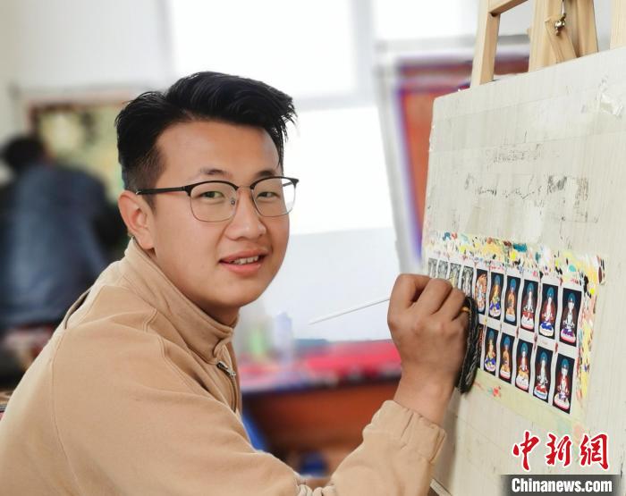 今年23歲的羅藏成立,10歲開始學(xué)畫畫,12歲時(shí)跟著桑杰加系統(tǒng)學(xué)習(xí)唐卡,目前,羅藏成立專注于繪制微型唐卡——扎卡,每個(gè)月也能掙1萬元左右。