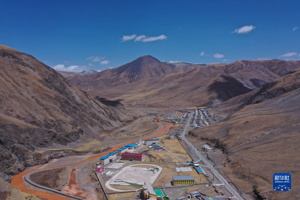 這是4月22日在青海省玉樹藏族自治州曲麻萊縣拍攝的巴干鄉(xiāng)寄宿制小學(xué)(無人機照片)。新華社記者 張龍 攝