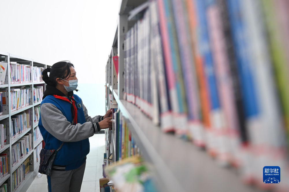 4月22日,青海省玉樹藏族自治州曲麻萊縣巴干鄉(xiāng)寄宿制小學(xué)的學(xué)生在圖書室借閱圖書。新華社記者 張龍 攝