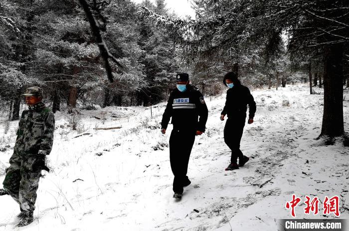 圖為森林公安和生態(tài)管護(hù)員一起巡山。陳文年 攝