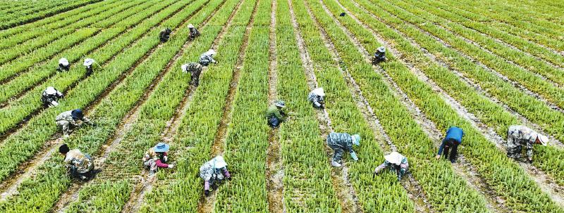 甘孜州白玉國有林保護管理局麻絨林場章都苗圃工人正為苗木除草。洛絨尼瑪 攝