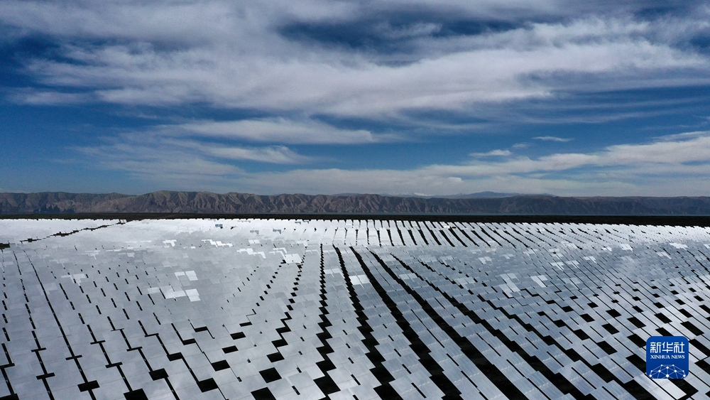 陽(yáng)光照射蔚藍(lán)的電池板,光能便轉(zhuǎn)化成源源不斷的電能;風(fēng)力發(fā)電機(jī)的葉片迎風(fēng)飛轉(zhuǎn),風(fēng)被“捕捉”進(jìn)一條條輸電線;百米高的吸熱塔和“鏡子海洋”組成熔鹽塔式光熱電站,科技感與綠色減碳有機(jī)結(jié)合……