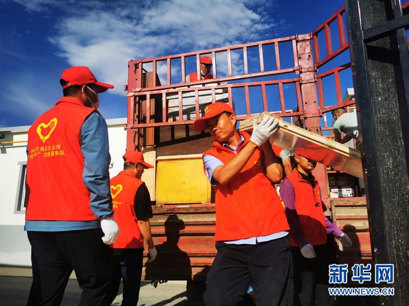 志愿服務(wù)隊為搬遷群眾搬送物資。(圖片來源:中建三局西北公司)