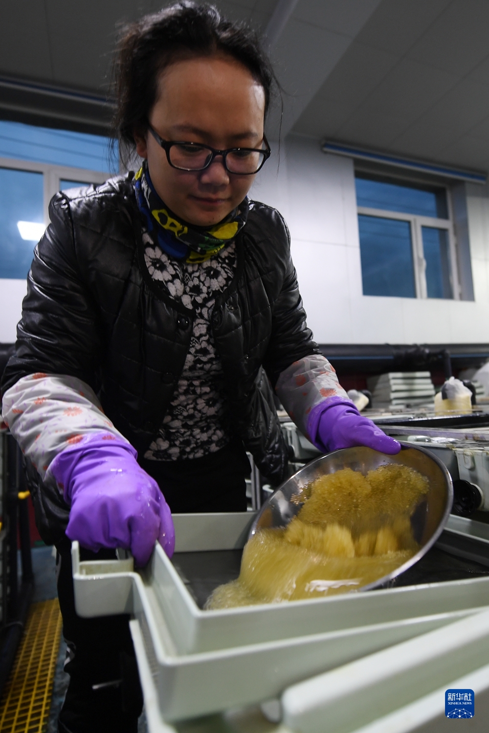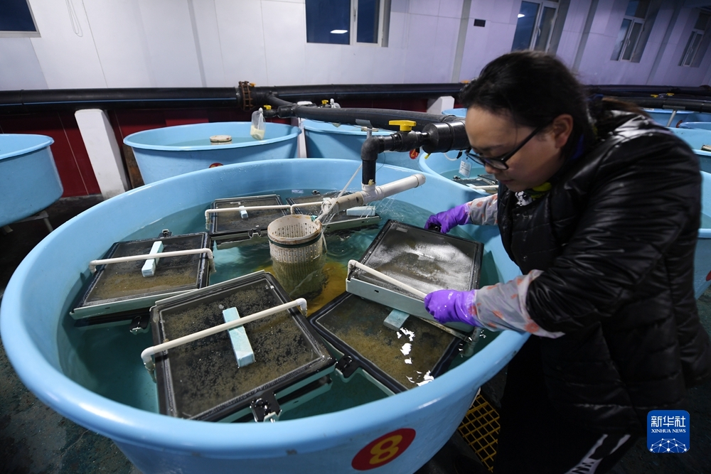 6月29日,在青海湖裸鯉沙柳河泉吉河增殖實(shí)驗(yàn)站,工作人員把收集的湟魚受精卵放入孵化盒。新華社記者 范培珅 攝