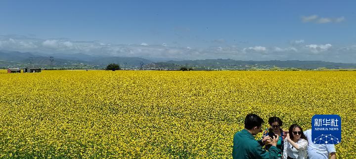 青海門源:高原油菜花開鋪就“金色花海”