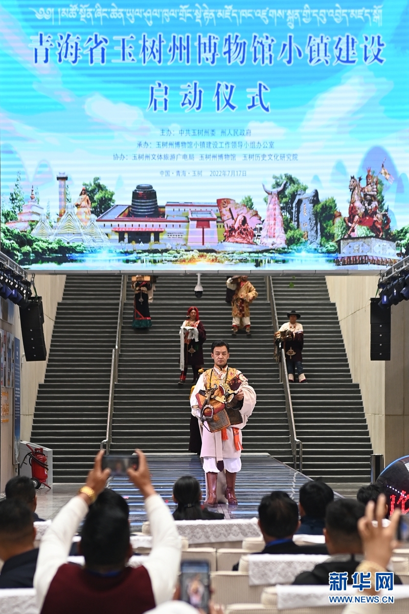 這是17日拍攝的青海省玉樹州博物館小鎮(zhèn)建設(shè)啟動儀式現(xiàn)場,模特正在展示博物館藏品。新華社記者 范培珅攝