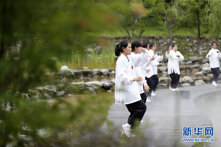 2022年7月18日,四川省九寨溝縣漳扎鎮(zhèn),幾名90后的藏族女孩在魯能美麗匯“非遺街區(qū)”研習(xí)太極拳。[詳細(xì)] -