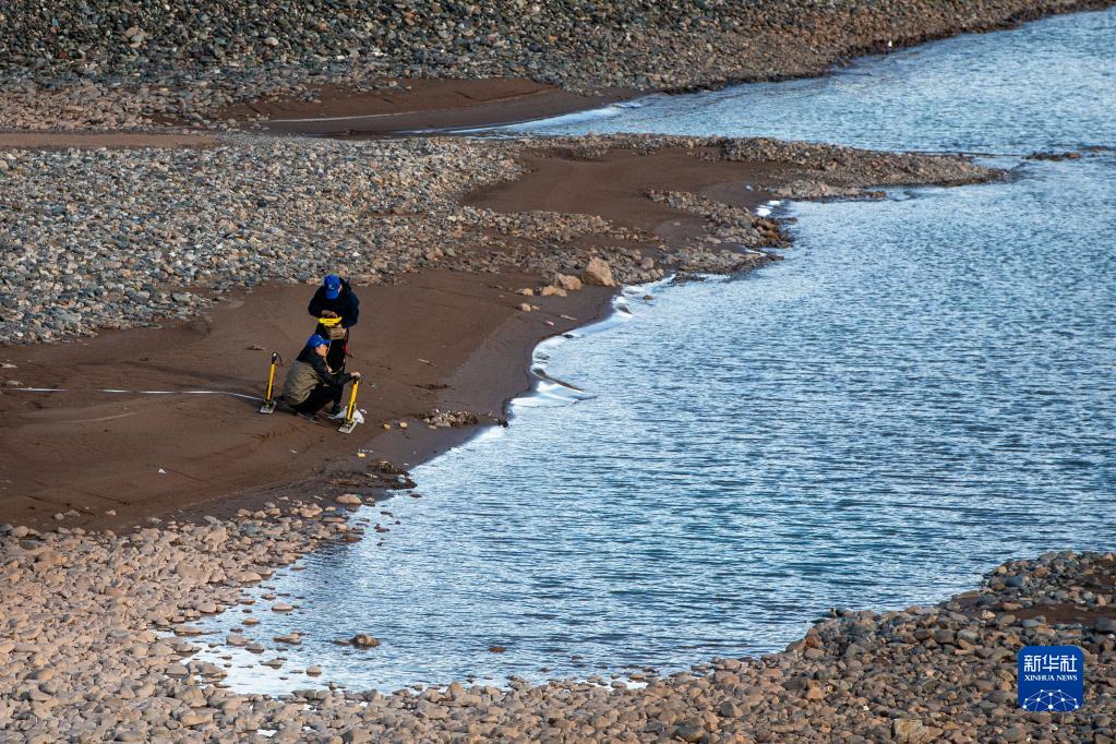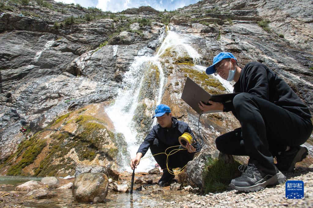 7月24日,長(zhǎng)江科學(xué)院科考隊(duì)員李魯?shù)ぃㄓ遥┡c劉晗在瀾滄江源區(qū)的扎曲進(jìn)行科考工作?!⌒氯A社記者 肖藝九 攝