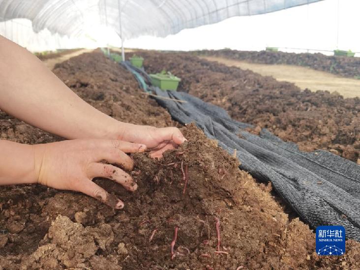 阿壩州遠龍養(yǎng)殖有限公司在大棚里用牛糞養(yǎng)蚯蚓。新華社記者 李倩薇 攝