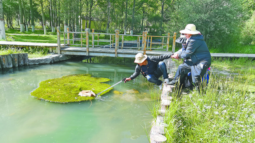 巴塘河濕地公園內(nèi)清除雜草的生態(tài)管護(hù)員們。譚梅 攝