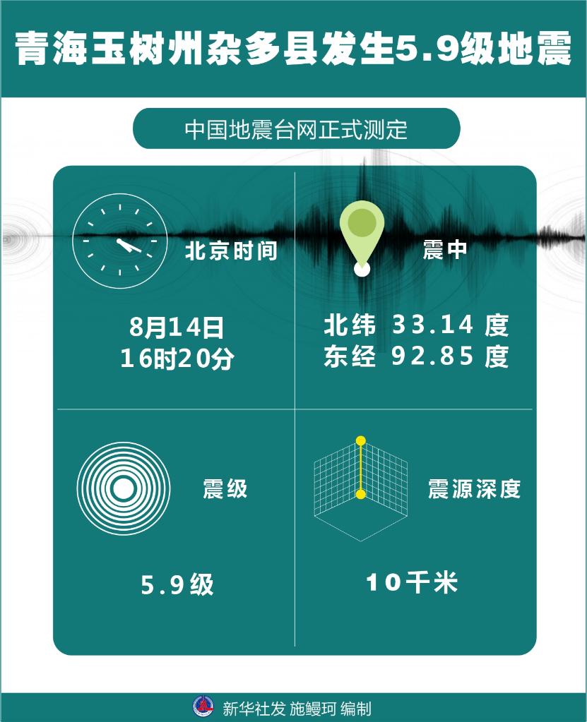 記者從青海省地震局獲悉,8月14日16時(shí)20分,青海省玉樹藏族自治州雜多縣發(fā)生5.9級(jí)地震,震源深度10千米,震中位于北緯33.14度、東經(jīng)92.85度。目前,暫無人員傷亡消息。