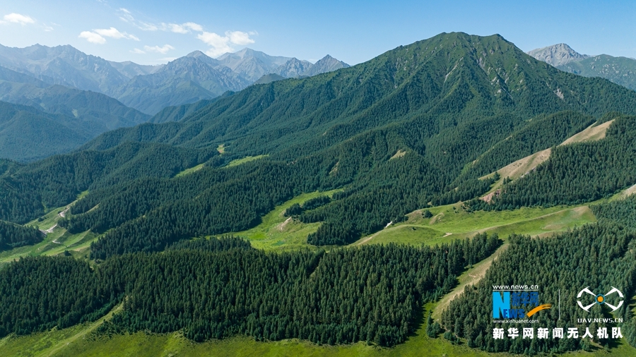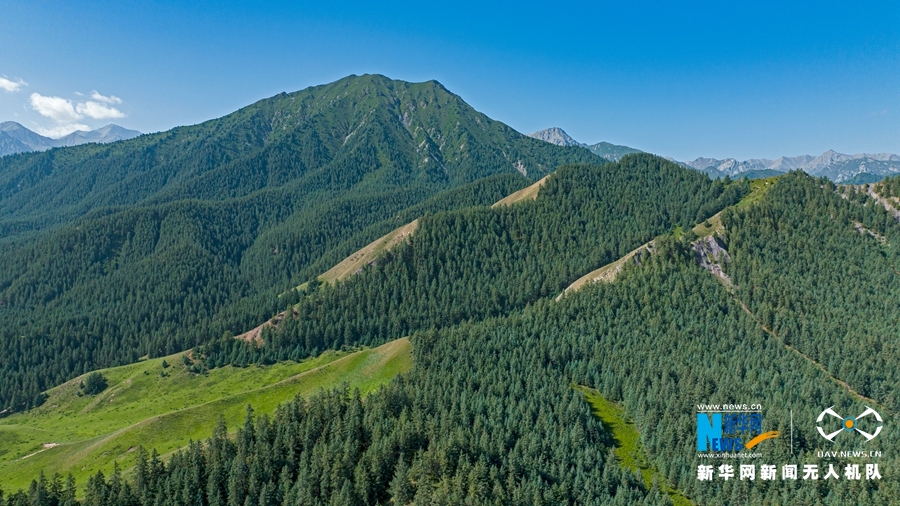 初秋時節(jié),甘肅省張掖市肅南裕固族自治縣馬蹄藏族鄉(xiāng)境內(nèi),祁連山延綿不斷,林海蒼翠茂密,勾勒出絢麗多姿的迷人景觀。新華網(wǎng)發(fā)(成林 攝)