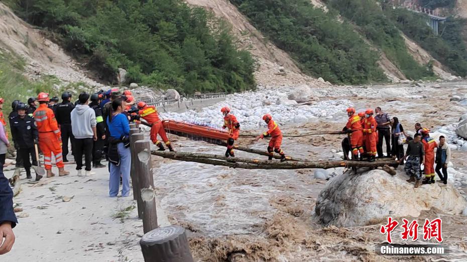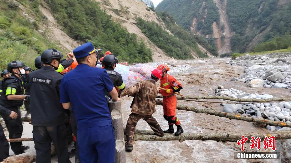圖為森林消防員正在轉(zhuǎn)移受傷群眾和村民。 四川森林消防供圖 攝