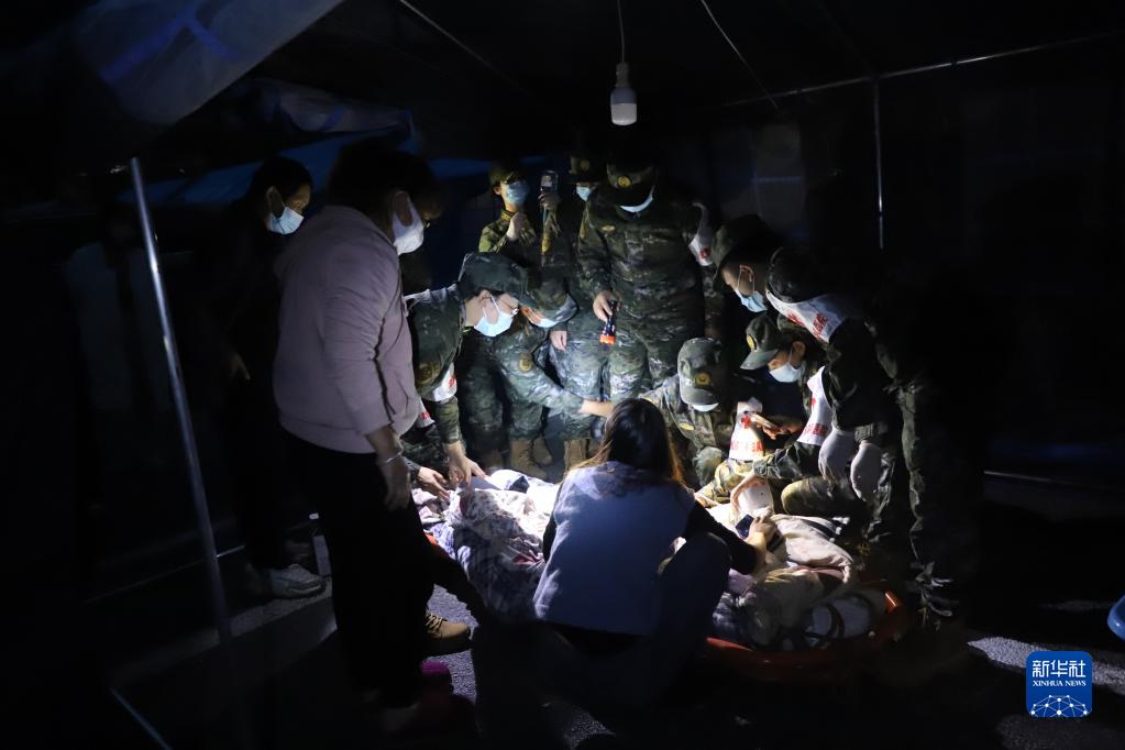 9月6日凌晨,甘孜州瀘定縣人民醫(yī)院燈火通明,醫(yī)護(hù)人員正對(duì)地震傷員開展緊急救治。醫(yī)院門口??康木茸o(hù)車警報(bào)燈閃爍不停,接到命令后,警笛在深夜鳴響,汽車迅速啟動(dòng)前去接診傷員。