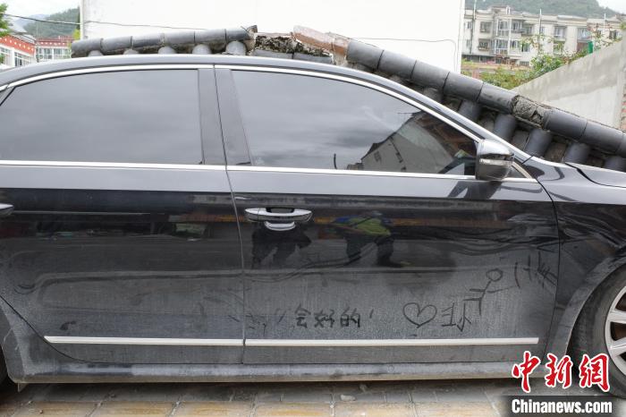 這座繁華小鎮(zhèn),往日的熱鬧與此時(shí)的寂靜對(duì)比鮮明,這是大自然的威力。不過(guò),街頭的蛛絲馬跡顯露著當(dāng)?shù)厝说臉?lè)觀。磨西鎮(zhèn)街邊,一輛黑色轎車(chē)被倒塌的圍墻壓癟了一半,有人在車(chē)門(mén)上寫(xiě)了三個(gè)字——“會(huì)好的!”