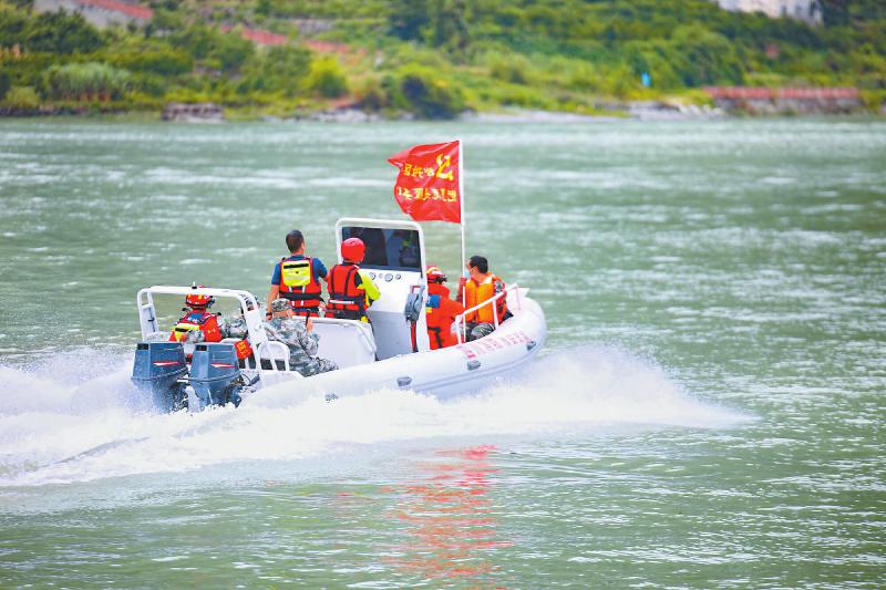 大渡河畔 救援隊伍水陸并進奔赴災區(qū)