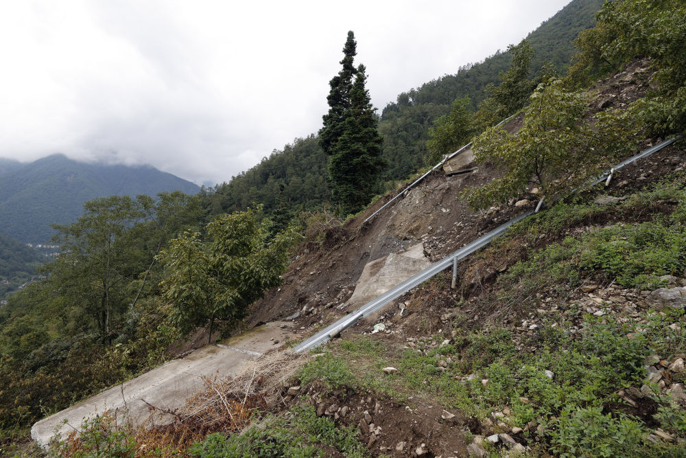 9月6日拍攝的得妥鎮(zhèn)附近的山谷,地震導(dǎo)致了山體垮塌。