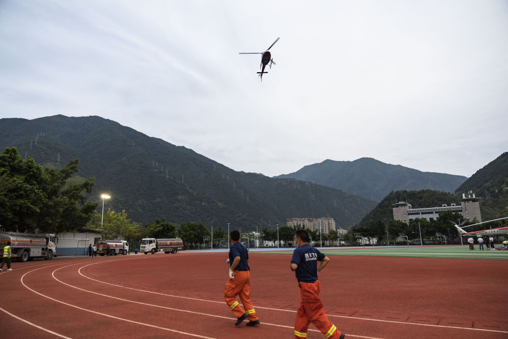 到達石棉縣后,我了解到有幾個偏遠鄉(xiāng)鎮(zhèn)受災(zāi)較重,但是現(xiàn)在道路不通。我四處打聽可以進震中采訪的辦法,終于在縣委指揮部找到一名應(yīng)急管理部南方航空護林總站司機,他們有直升機前往現(xiàn)場救援,我馬上前去聯(lián)系,終于在第二天,飛到大山中的“孤島”幸福村。