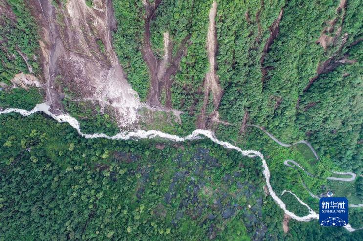 這是9月7日拍攝的海螺溝景區(qū)一號營地下游處的崩塌災(zāi)害現(xiàn)場(左上部分)(無人機照片)。新華社發(fā)(四川省冶勘設(shè)計集團有限公司供圖)