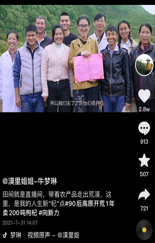 在整個(gè)2021年,牛夢(mèng)琳賣出去了近100萬單,其中有200多噸枸杞,在短視頻平臺(tái)組織的年貨節(jié)期間,她更是在一晚上賣出了價(jià)值上百萬元的柴達(dá)木農(nóng)貨。