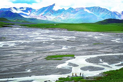 來自長(zhǎng)江科學(xué)院的科考隊(duì)員在長(zhǎng)江源區(qū)進(jìn)行科考工作。