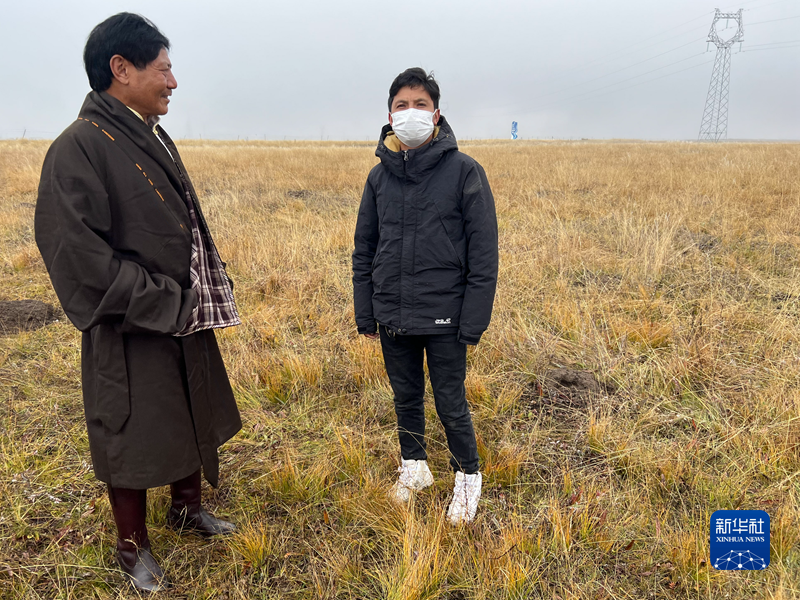 東周(左)和兒子萬瑪王青在交談。新華社記者 康錦謙 攝
